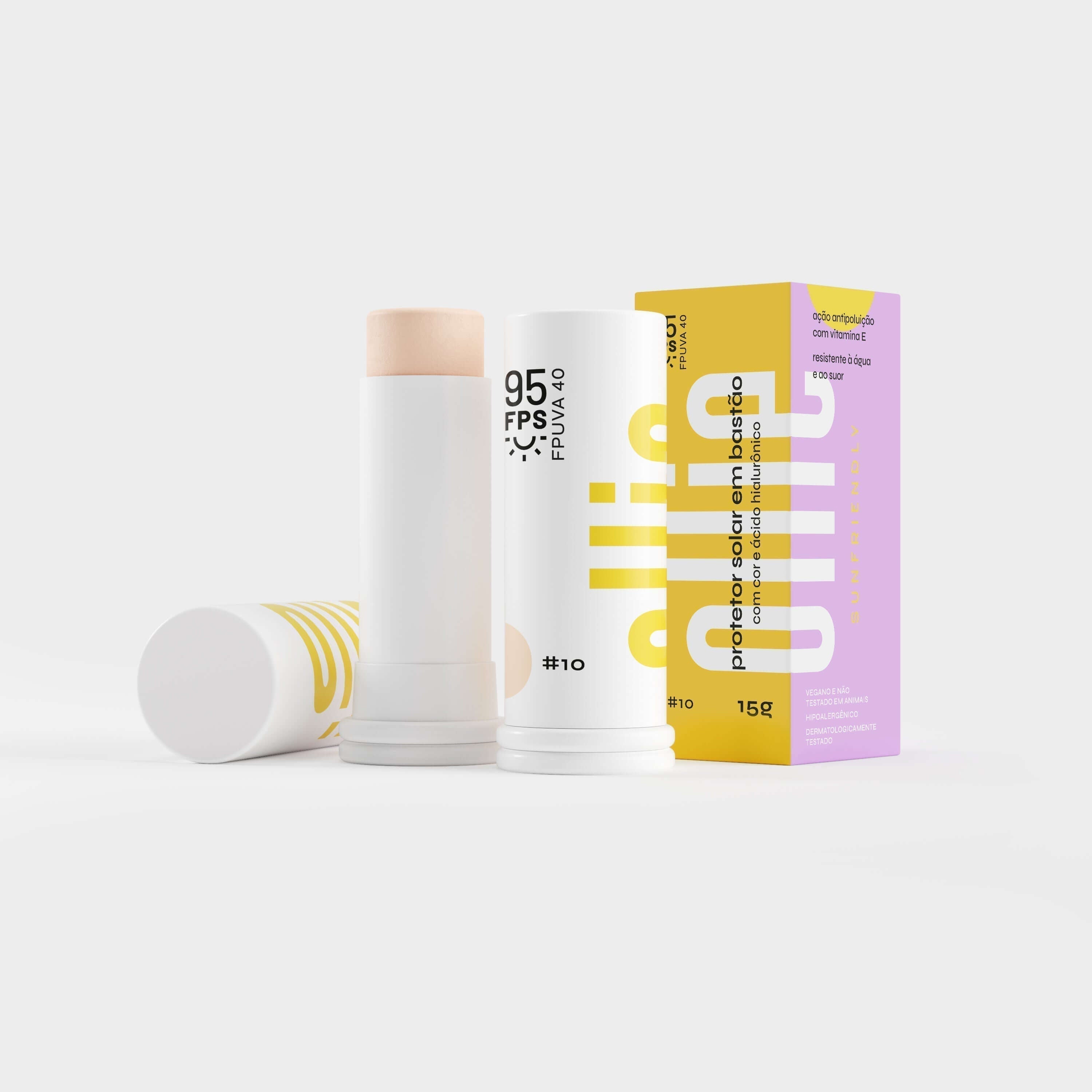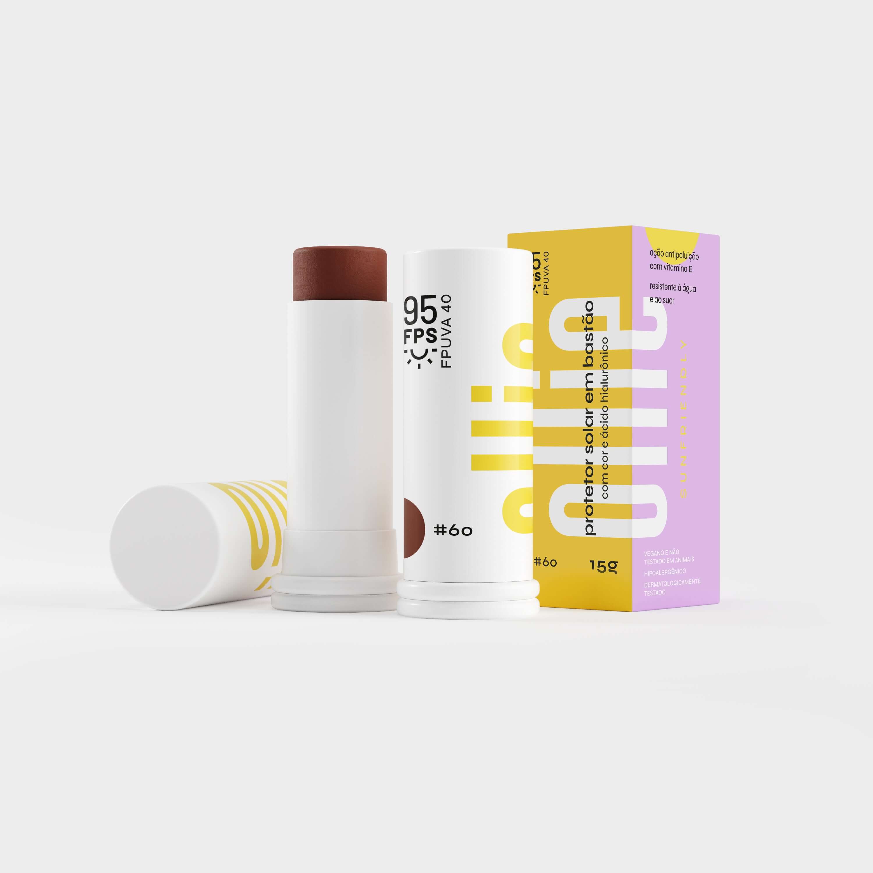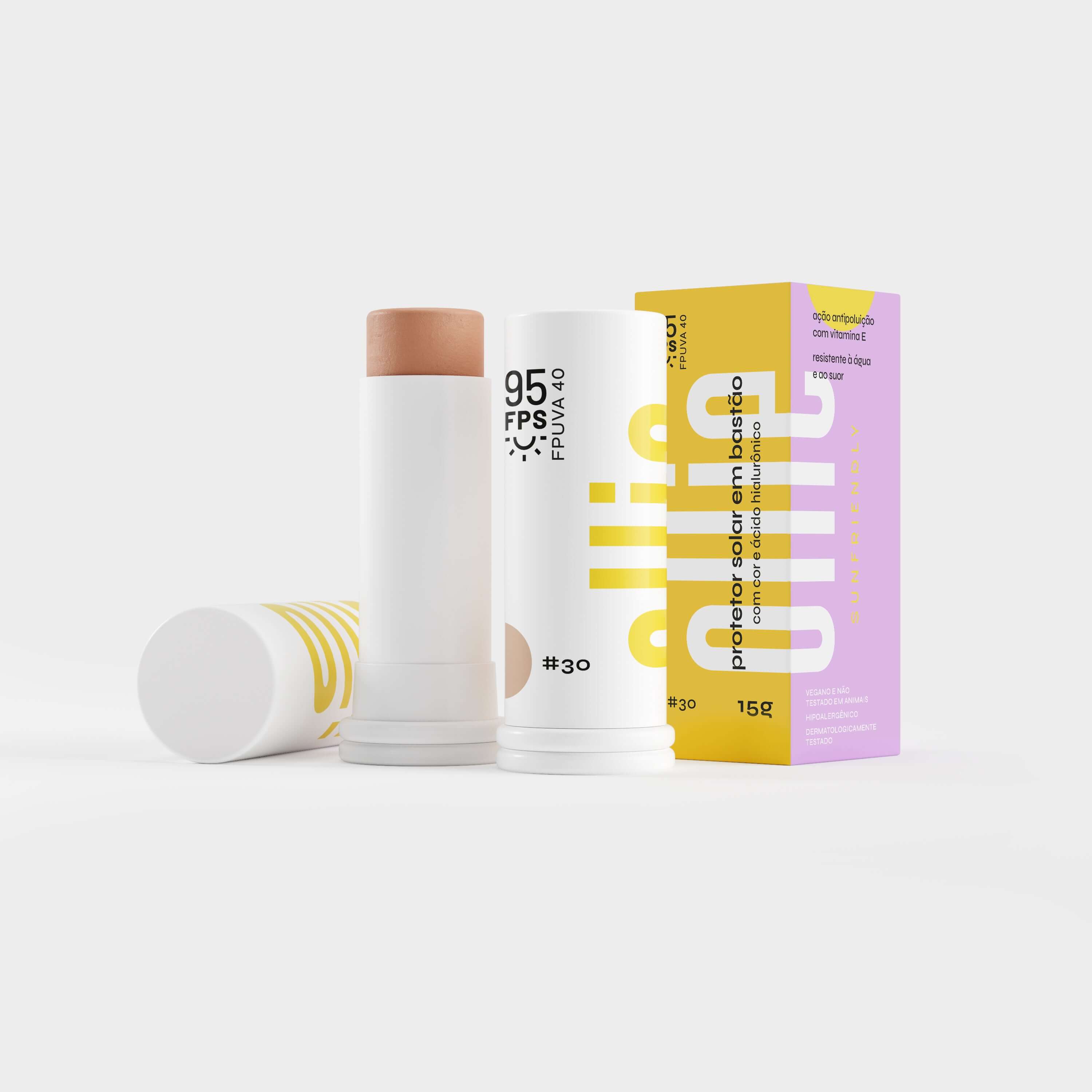 Praticidade como você nunca viu! O Protetor Solar em Bastão Com Cor da Ollie tem efeito de base, oferecendo cobertura média, longa duração e FPS 95 com FPUVA 40! Perfeito para todos os tipos de pele, incluindo as oleosas e maduras, suaviza manchas de acne e melasma e tem toque sequinho, com benefícios adicionais de tratamento da Vitamina C, Vitamina E e Ácido Hialurônico.